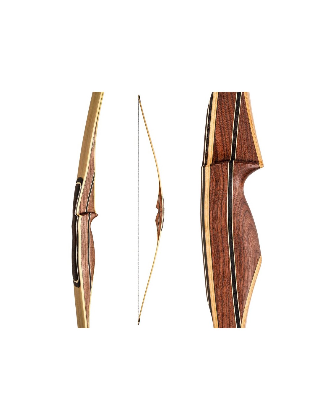 The 66 inch longbow Epona stands for sensitive handwork, combined with the latest manufacturing technology, created by nature - crafted for high performance. The grip is, as usual with ANTUR, an actionwood replica from sustainable forestry. The longbow Diana is made of walnut, maple and wenge and fits perfectly in the hand thanks to the ergonomically shaped grip. Its solid bamboo throwing arms with carbon core give it maximum effectiveness. The oiled surface gives it a velvety feel. It is simply fun to stroke over it with your hand and shoot it.