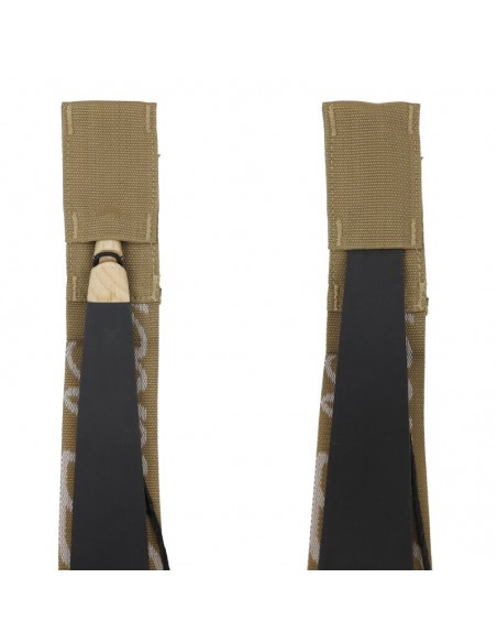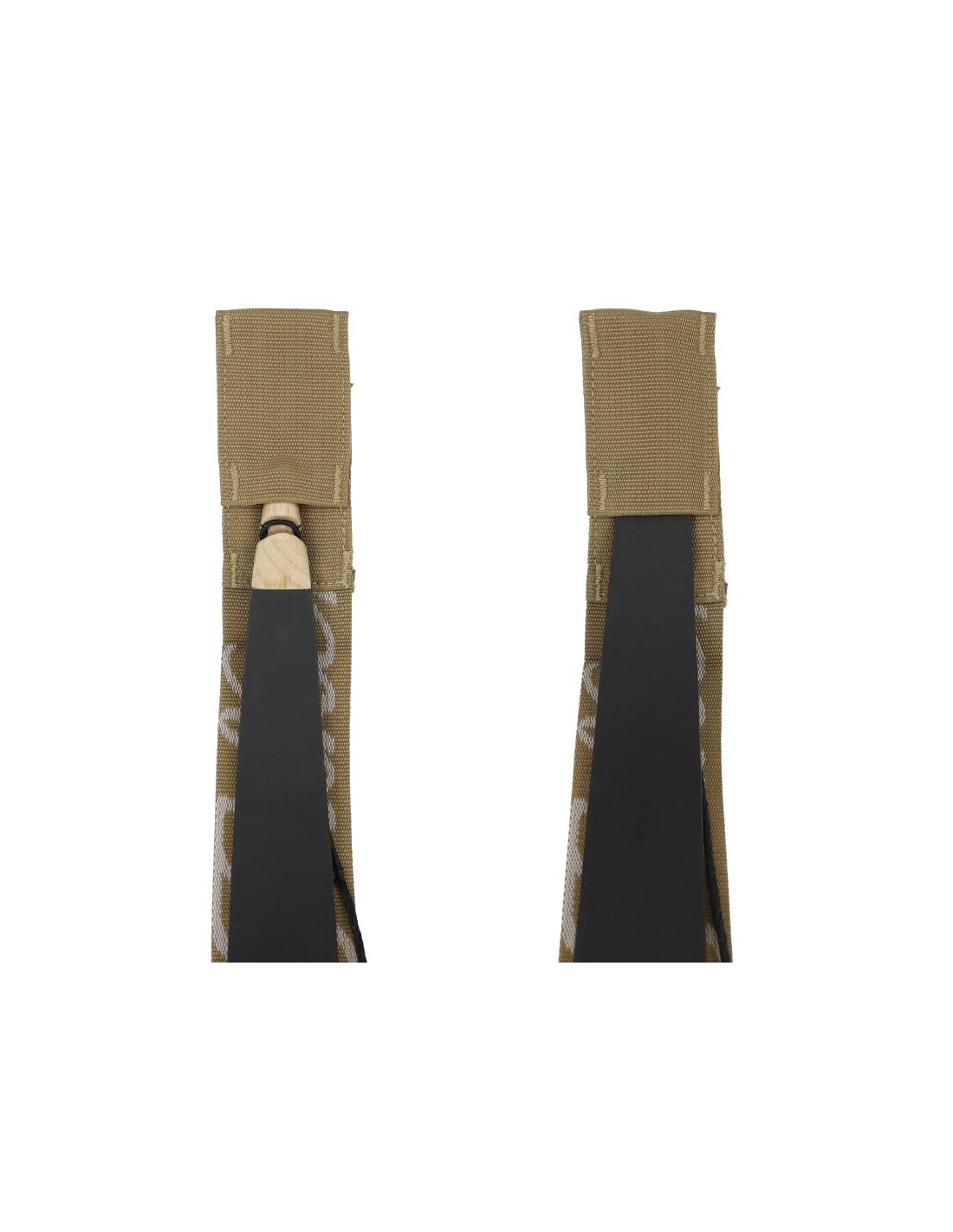 The bow stringer is of high-quality stitching and made of robust nylon. It is 5.2 cm wide and provides an optimal fit on the bow and enough space to step on when cocking and holding with the foot. To prevent slipping on the limb, the contact surface of the belt is covered with a rubberised surface.