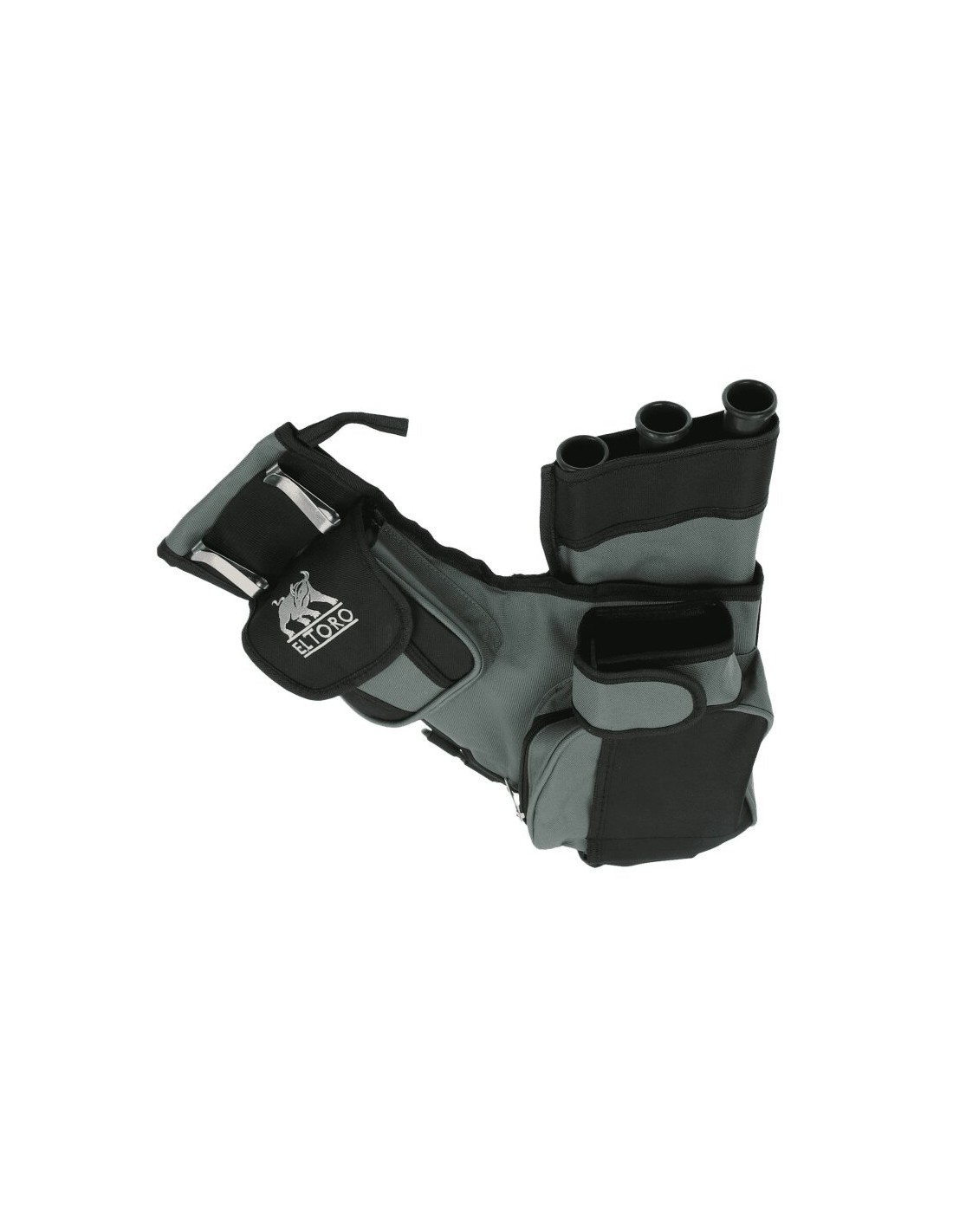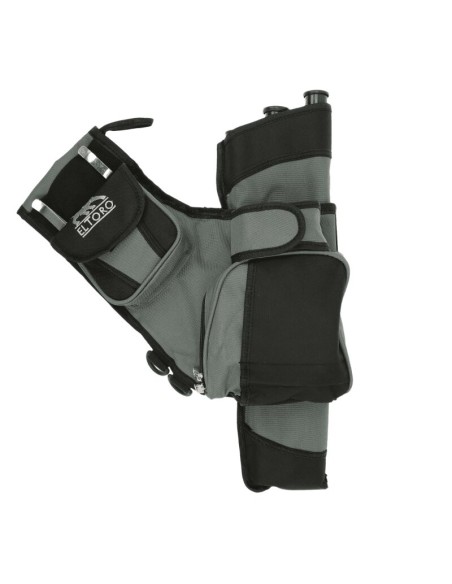Side quiver made of CORDURA including 3 tubes and 3 patch pockets.