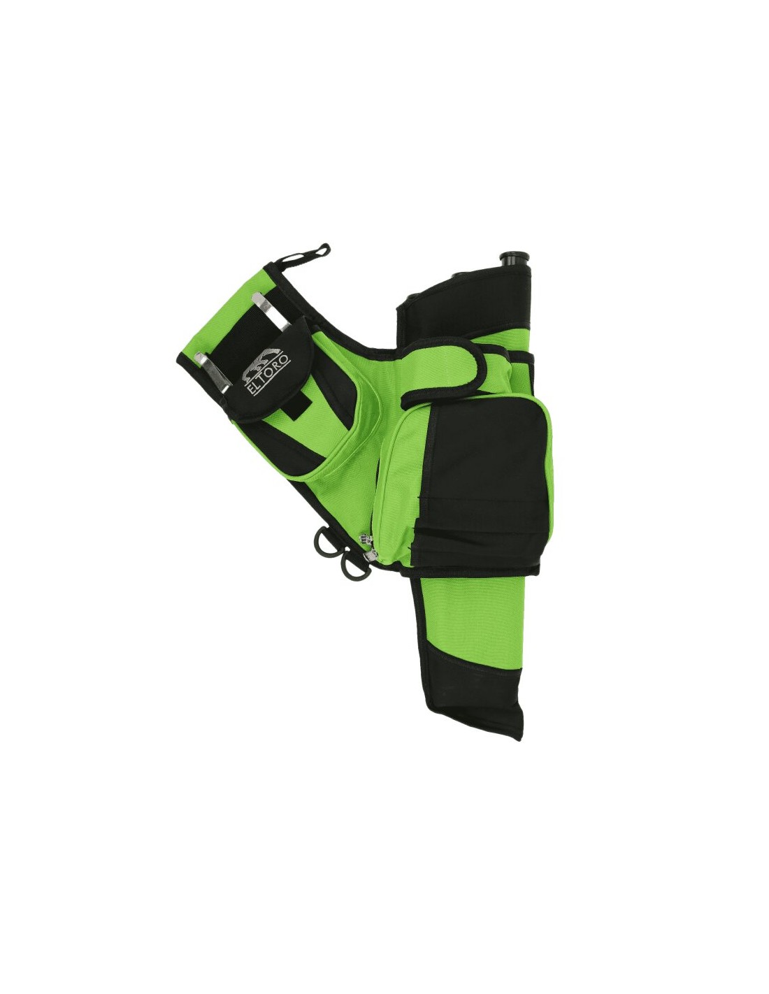 Side quiver made of CORDURA including 3 tubes and 3 patch pockets.