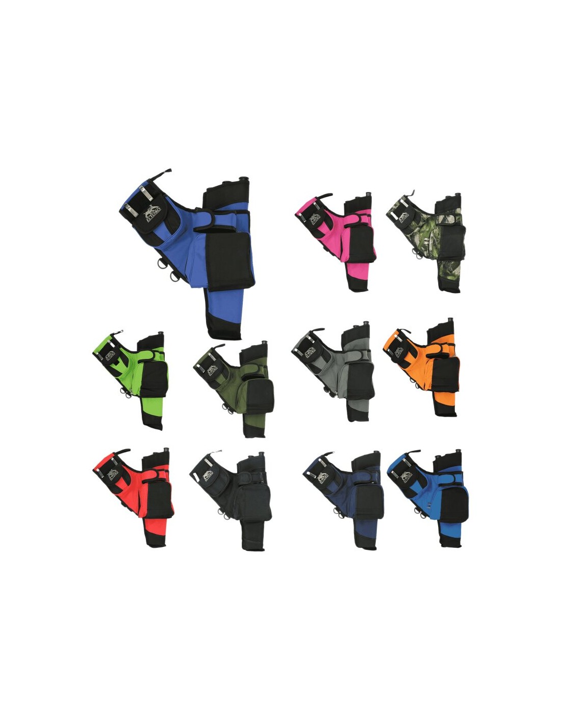 Side quiver made of CORDURA including 3 tubes and 3 patch pockets.