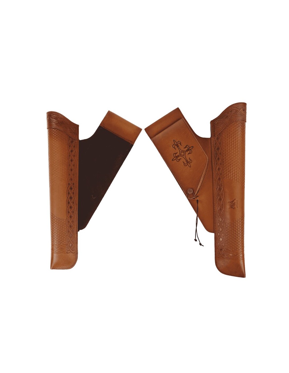 The elToro PRIME Brea side quiver is hand made of robust, high-quality smooth leather and impresses with punctured ornaments that run across the entire quiver. Particularly striking is the lily cross on the accessory pocket and the scale-like structure on the quiver, reminiscent of chain mail. All together, this gives the quiver a discreet elegance.