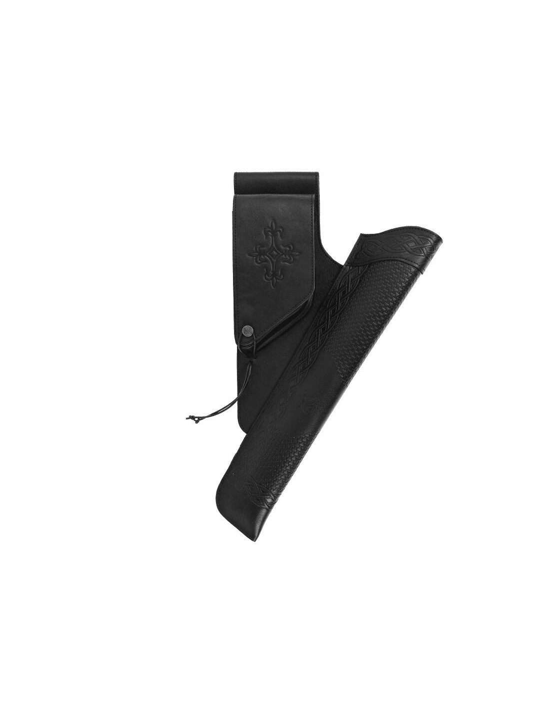 The elToro PRIME Brea side quiver is hand made of robust, high-quality smooth leather and impresses with punctured ornaments that run across the entire quiver. Particularly striking is the lily cross on the accessory pocket and the scale-like structure on the quiver, reminiscent of chain mail. All together, this gives the quiver a discreet elegance.