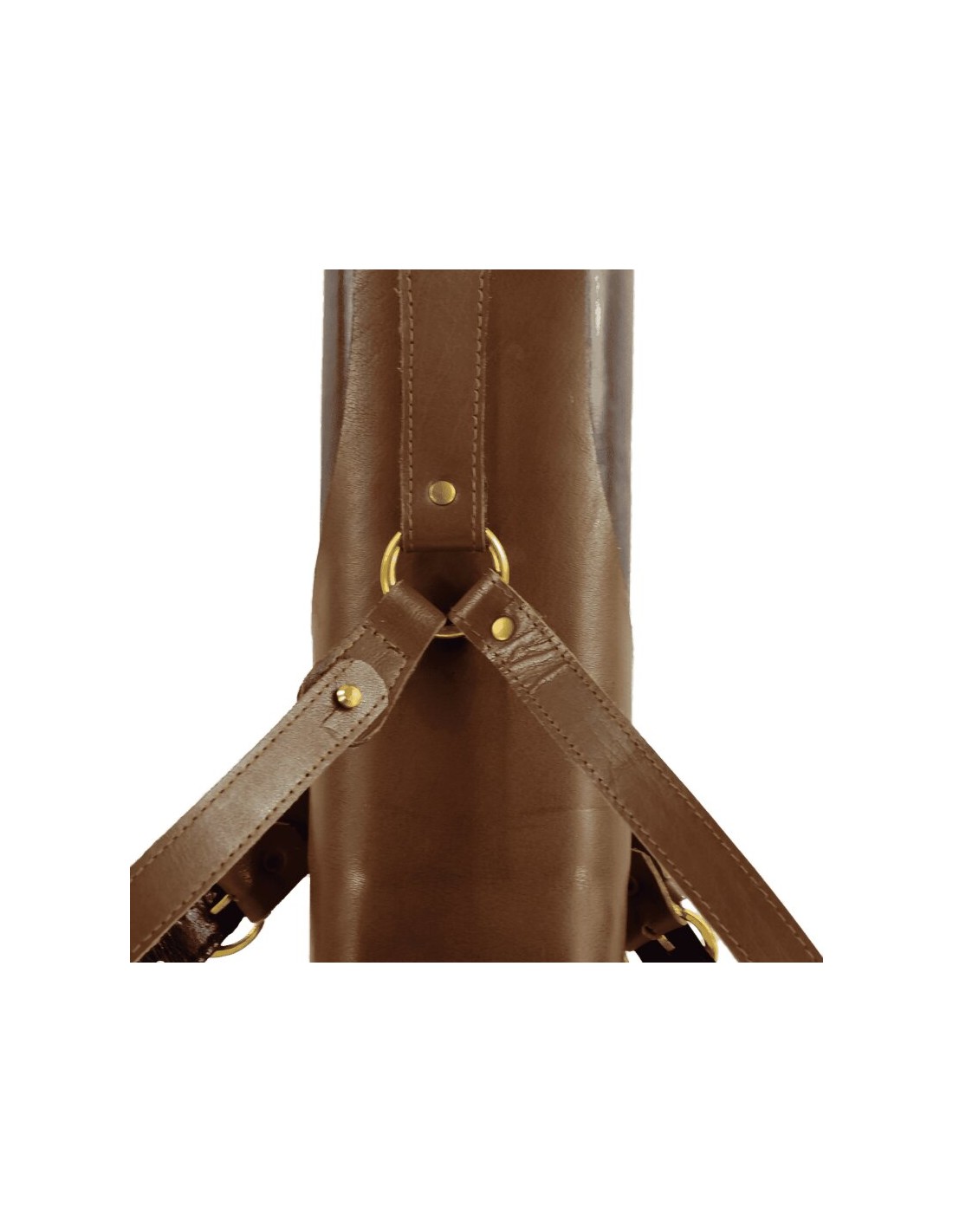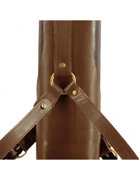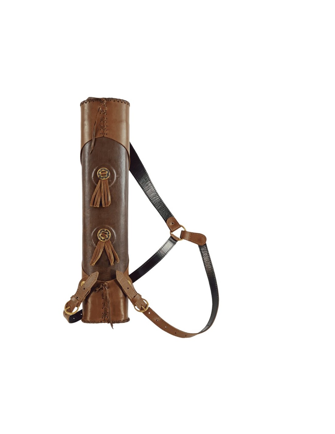 High-quality back quiver in an oval shape. Hand-made from robust, high-quality leather with lavish brass ornaments and decorative stitching.