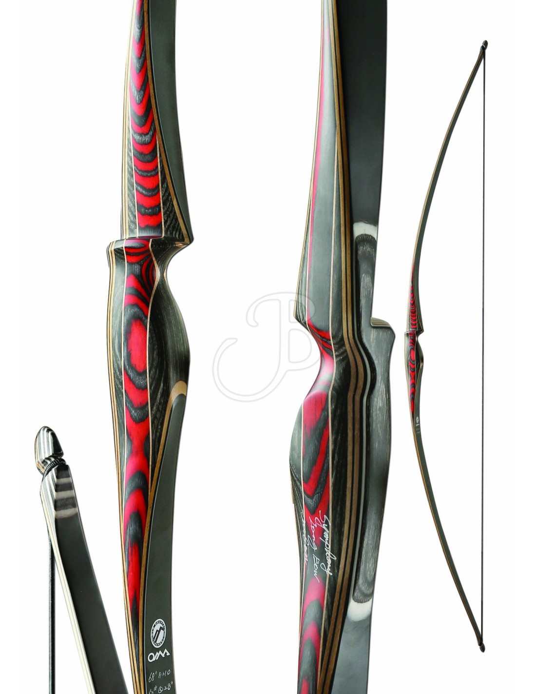 Il riser ha un forma ergonomica, è confortevole in mano ed è composto da Diamondwood e Teknowood in acero, con inserti chiari. La combinazione cromatica di legno scuro con un' anima dai riflessi bordeaux-nero, conferisce all' arco un design armonico e moderno.