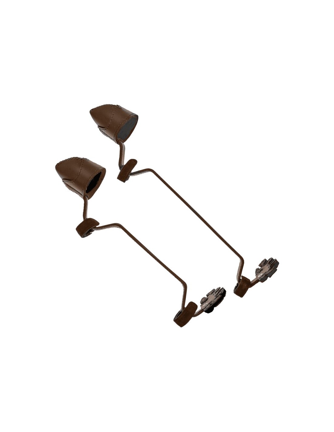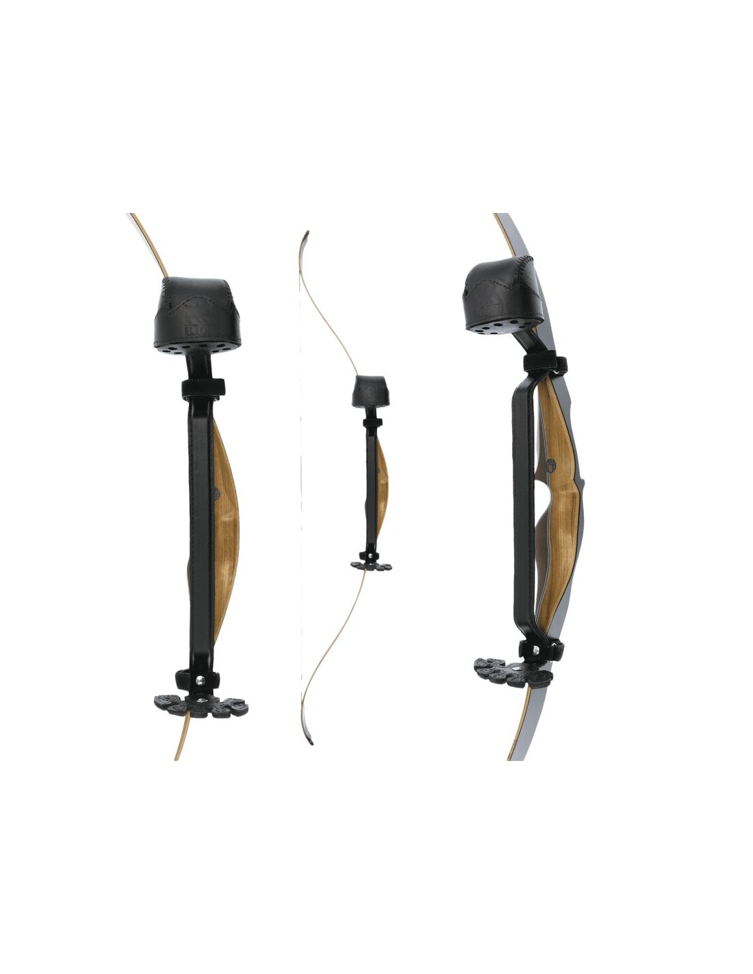 La faretra Pure Black di elTORO può essere utilizzata su tutti gli archi lunghi e ricurvi ed è realizzata interamente in vera pelle marrone. Il fissaggio all'arco è molto semplice: Basta mettere i due anelli intorno all'arco e fissarli con il velcro. La faretra è già saldamente fissata all'arco senza danneggiarlo. Per garantire la necessaria stabilità, tra la parte superiore e quella inferiore è presente una guida di collegamento in metallo rivestita in pelle.