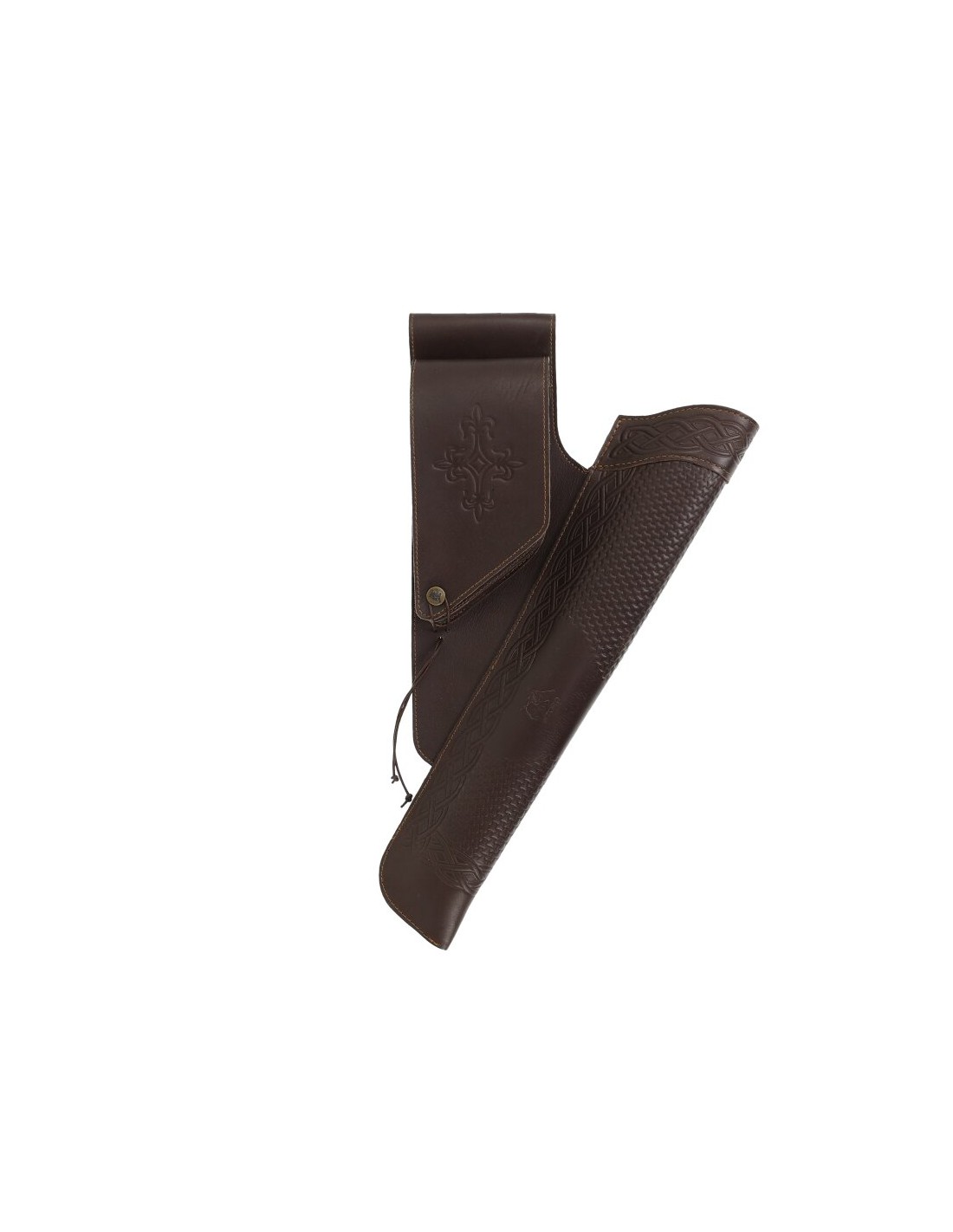 La faretra laterale elToro PRIME Brea è realizzata a mano in pelle liscia robusta e di alta qualità e colpisce per i motivi traforati che ricoprono l'intera faretra. Particolarmente suggestivi sono il giglio incrociato sulla tasca porta accessori e la struttura a scaglie sulla faretra, che ricorda la maglia metallica. Nel complesso, questi elementi conferiscono alla faretra un'eleganza discreta.