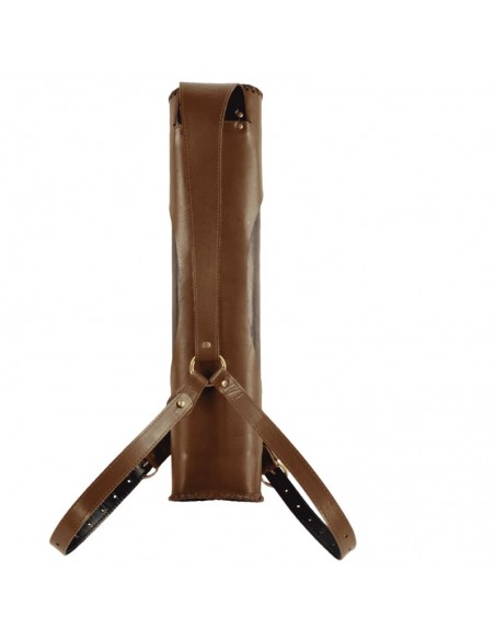 Faretra posteriore di alta qualità di forma ovale. Realizzata a mano in pelle robusta e di alta qualità con ricchi ornamenti in ottone e cuciture decorative.