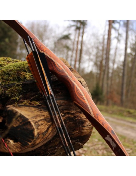 Ablaze - La parola che indica qualcosa che va a fuoco o che brilla è più che appropriata quando si guarda al DRAKE ARCHERY Ablaze! Questo potente arco non è realmente in fiamme, ma la sua colorazione rosso-arancio con accenti neri lo fa sembrare incandescente. Gli arti, particolarmente appariscenti, hanno un'anima in bambù e sono ricoperti di vetro trasparente, che fa risaltare il colore e le venature del legno e conferisce all'arco un aspetto insolito e quasi spettacolare.