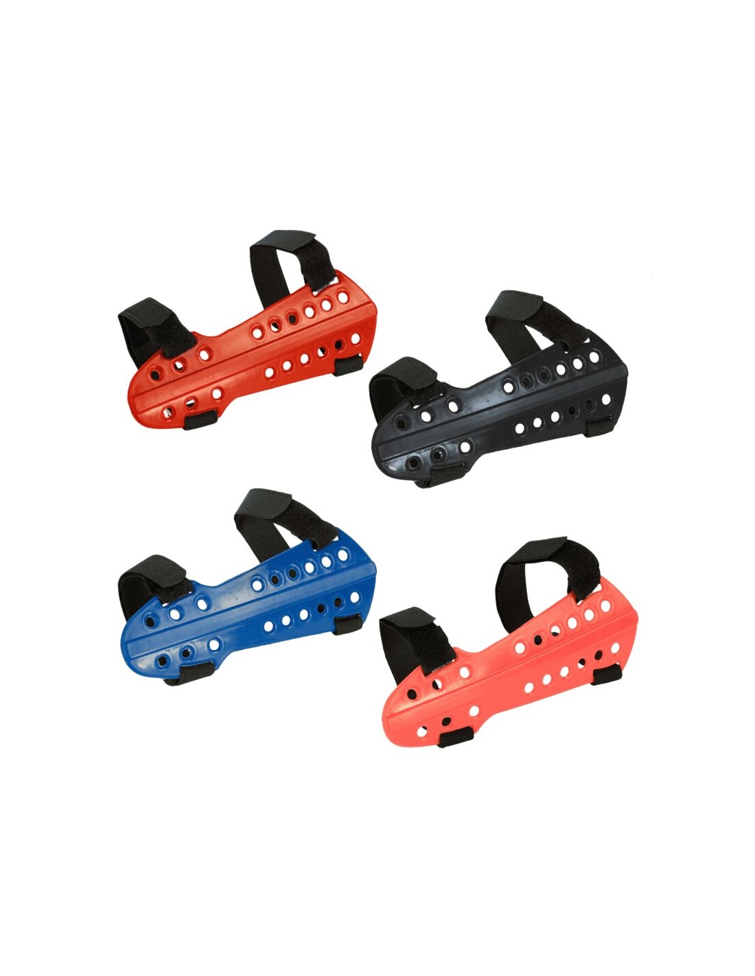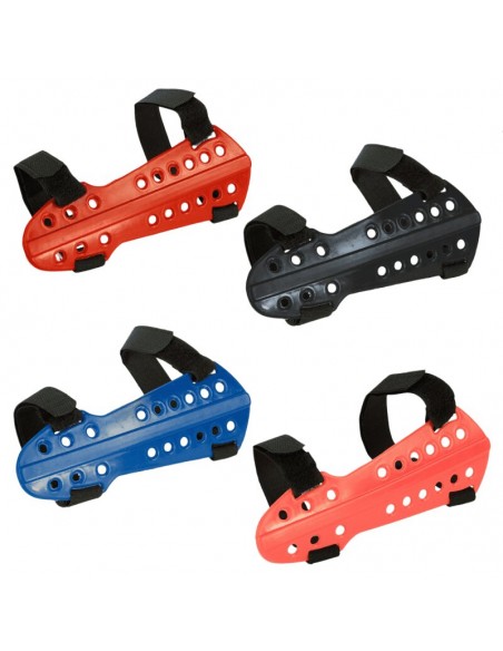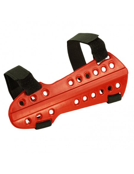 Parabraccio in plastica, preformato anatomicamente con bande elastiche regolabili.
