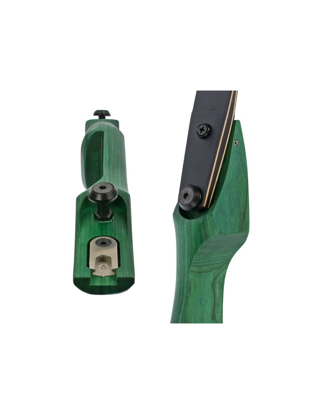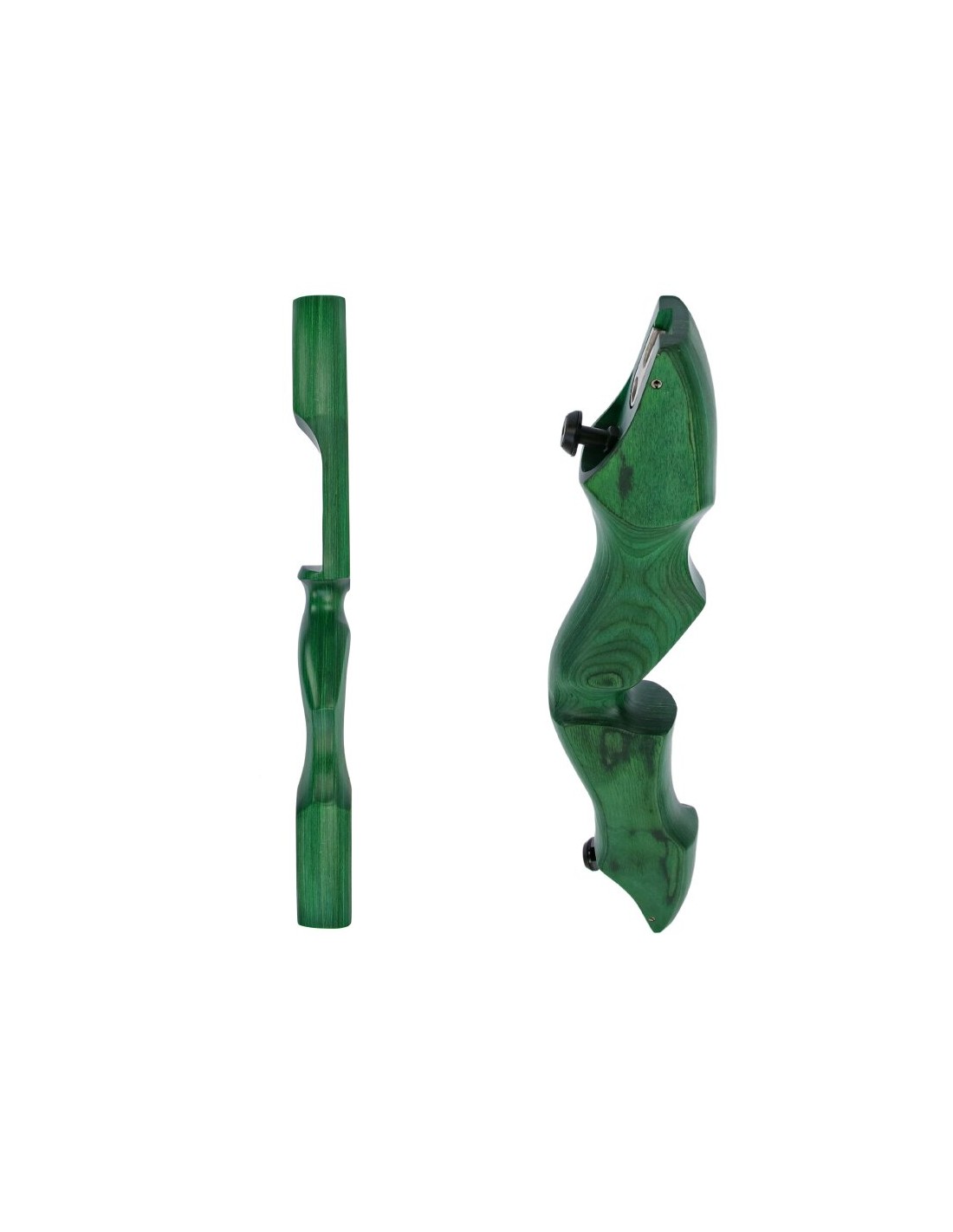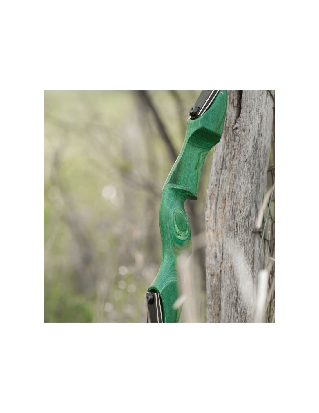 Non esiste un arco ricurvo tradizionale con sistema ILF? - C'è! Ed è quello di JACKALOPE Archery! Con il riser Malachite del 2019, JACKALOPE amplia la sua vasta gamma di prodotti con un altro riser moderno dal look tradizionale. L'innovativo Dymondwood, un composto altamente stabile di diversi strati di legno e resina epossidica, assorbe le vibrazioni in modo estremamente efficiente. Il riser Malachite è attraente semplicemente per il suo emozionante design dai toni verdi intensi, che assomiglia molto al minerale malachite. Questo lo distingue chiaramente dagli altri archi tradizionali.