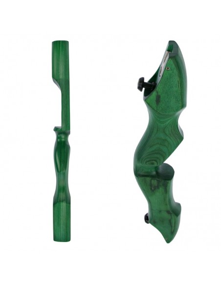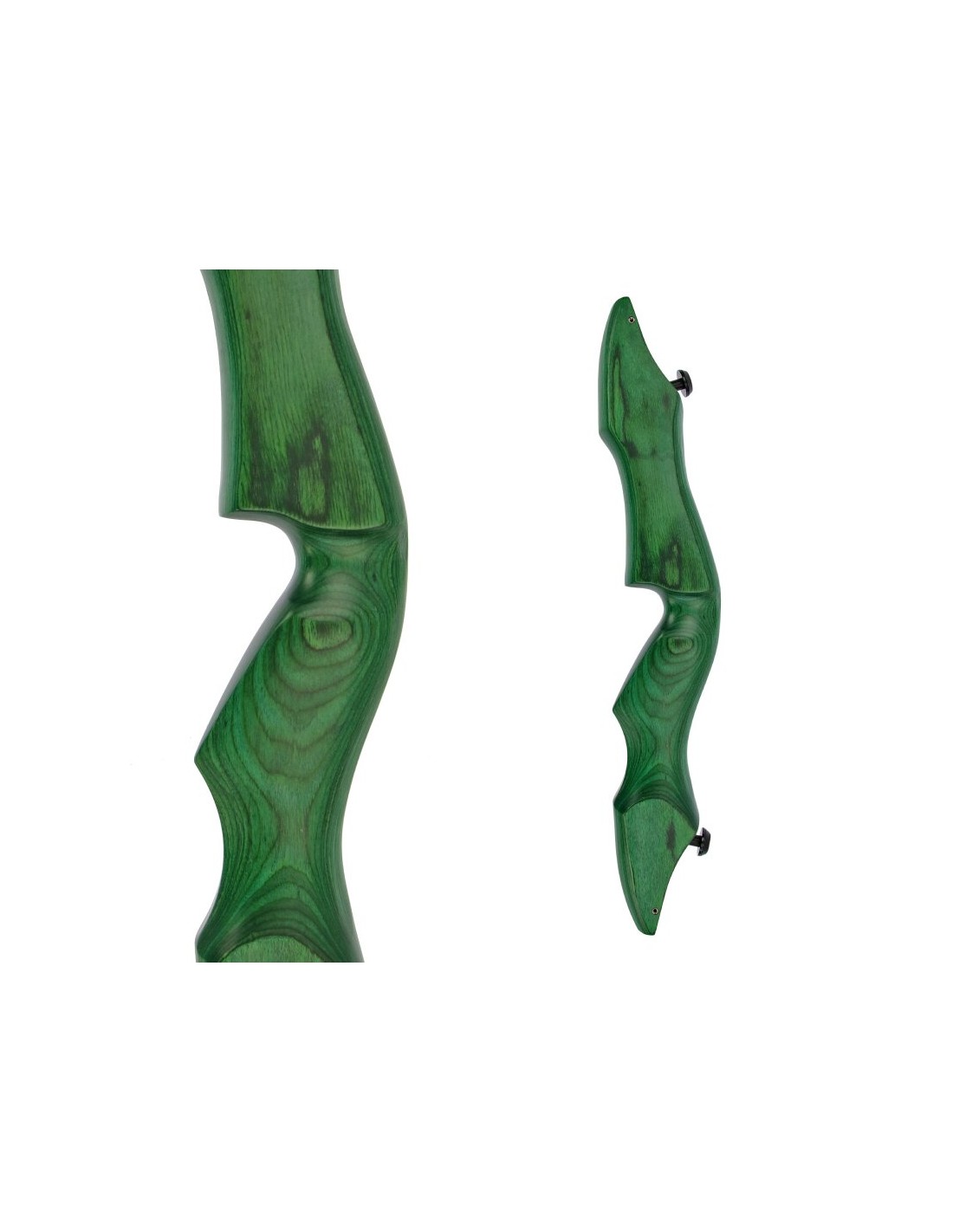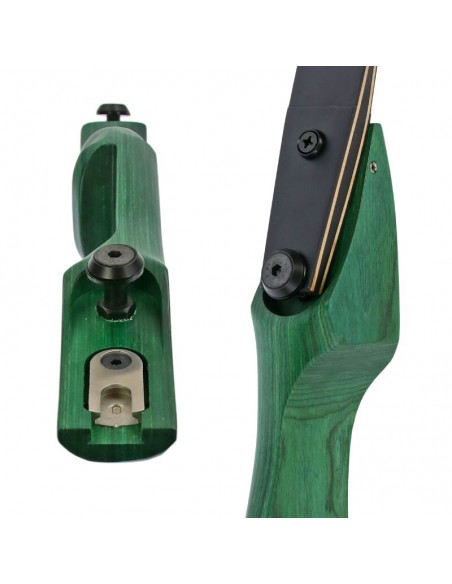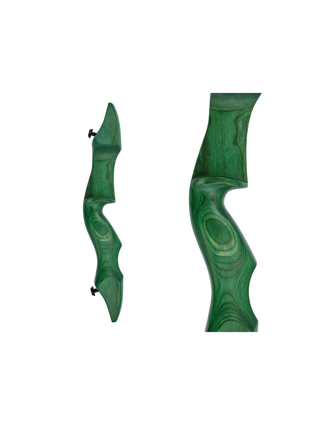 Non esiste un arco ricurvo tradizionale con sistema ILF? - C'è! Ed è quello di JACKALOPE Archery! Con il riser Malachite del 2019, JACKALOPE amplia la sua vasta gamma di prodotti con un altro riser moderno dal look tradizionale. L'innovativo Dymondwood, un composto altamente stabile di diversi strati di legno e resina epossidica, assorbe le vibrazioni in modo estremamente efficiente. Il riser Malachite è attraente semplicemente per il suo emozionante design dai toni verdi intensi, che assomiglia molto al minerale malachite. Questo lo distingue chiaramente dagli altri archi tradizionali.