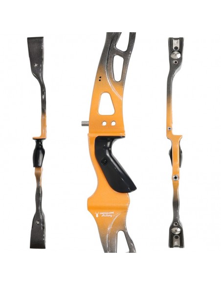 Grazie alla dotazione tecnica, altrimenti nota solo ai precedenti modelli di punta con attacco ILF, il JACKALOPE Zircon è diventato immediatamente popolare. Offre semplicemente più di quanto comunemente si possa trovare nella medesima fascia di prezzo. Realizzata in lega di alluminio-magnesio ad alta resistenza e verniciata in colori entusiasmanti, l'impugnatura non solo è dotata di un'impugnatura ergonomica e di boccole standard per il pulsante, il poggiafreccia e lo stabilizzatore, ma anche di boccole aggiuntive sotto gli arti, che possono essere utilizzate per ammortizzatori supplementari. Inoltre, la sezione centrale dello Zircon ha possibilità di regolazione per l'allineamento laterale dei flettenti.