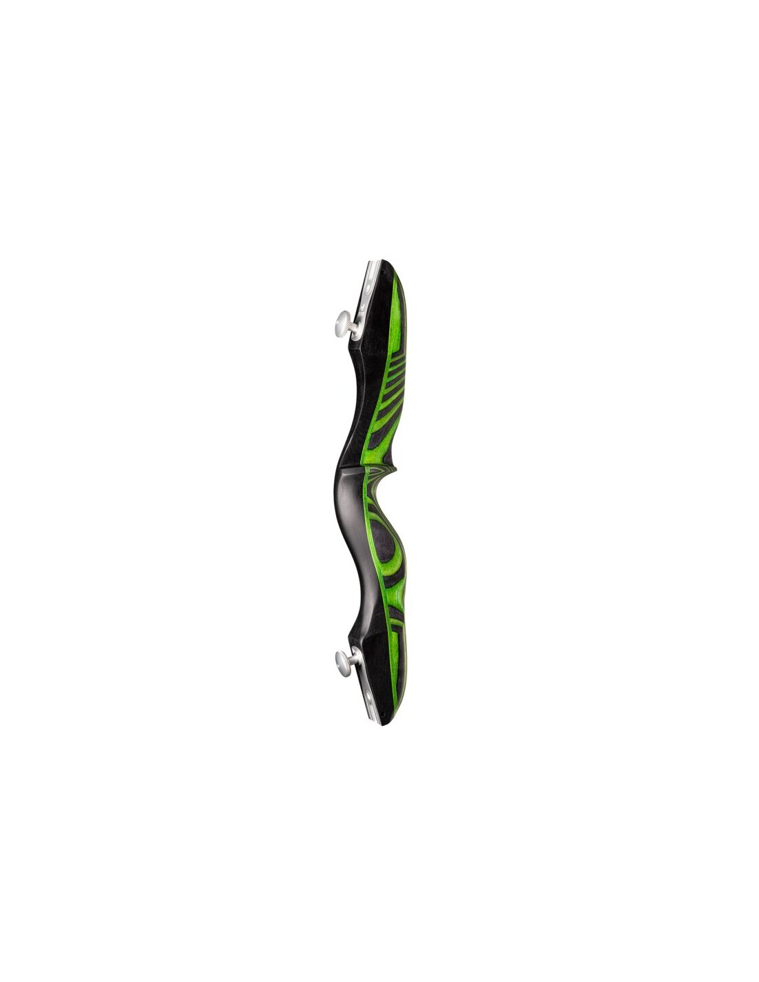 L'impugnatura di alta qualità è dotata del sistema internazionale ILF di Antur ed è realizzata in robusto ebano nero e legno d'azione verde. Con un peso di 840 grammi, il massiccio riser ha una scorrevolezza di tiro molto particolare. In combinazione con i nostri archi in carbonio, il risultato è una lunghezza dell'arco di 64 pollici.