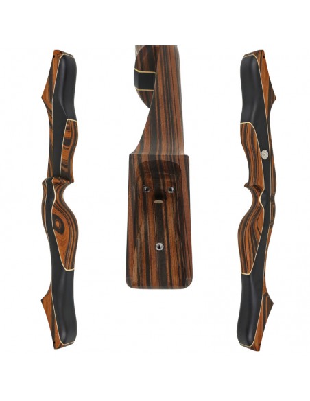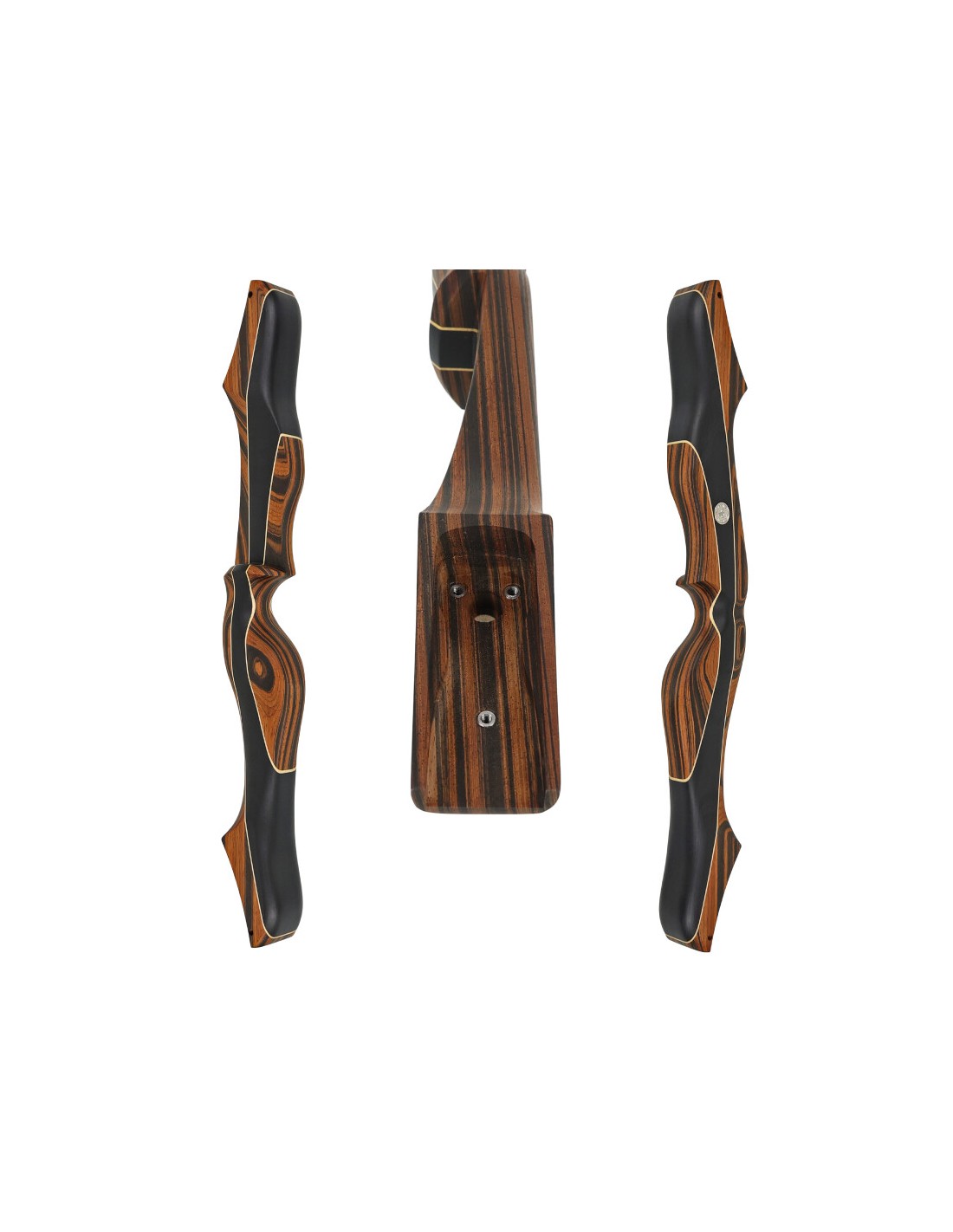 Il riser ILF Hercules JASPIS con blocco di montaggio in alluminio anodizzato seduce in uno stupendo abbinamento Ebano/Palissandro. L'impugnatura di alta qualità è dotata del sistema internazionale di innesto ILF di Antur ed è realizzata in robusto ebano nero e legno action Palissandro. Con un peso di 1000 grammi, il massiccio riser ha una scorrevolezza di tiro molto particolare. In combinazione con i nostri archi in carbonio, il risultato è una lunghezza dell'arco di 68 pollici.