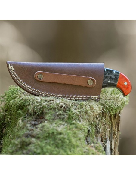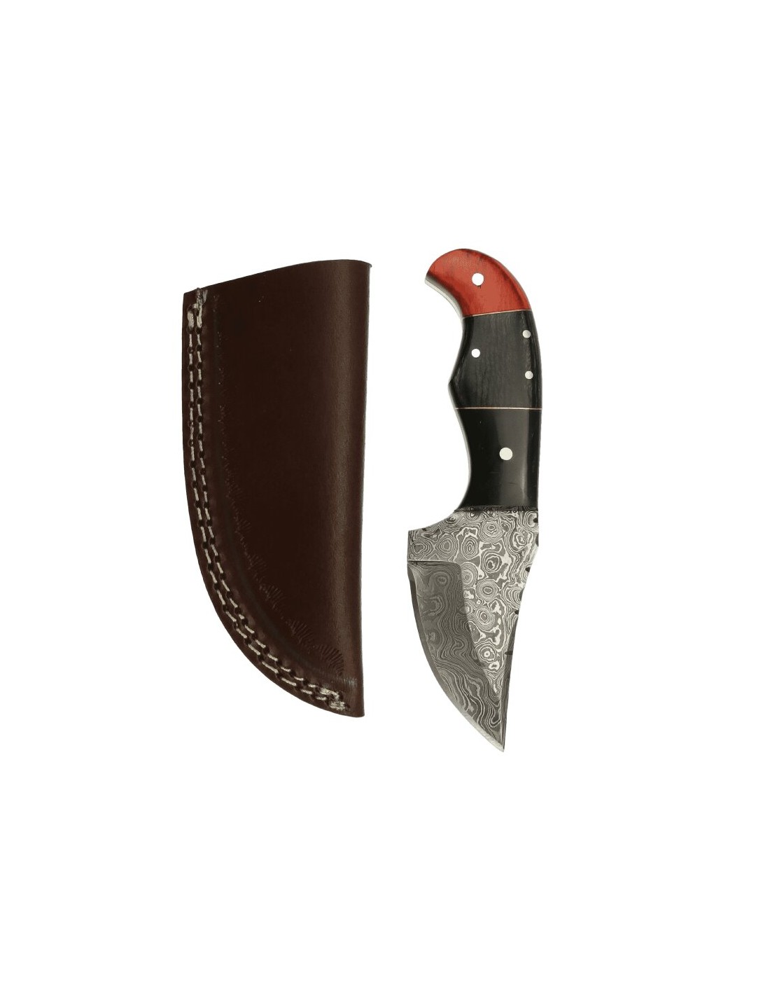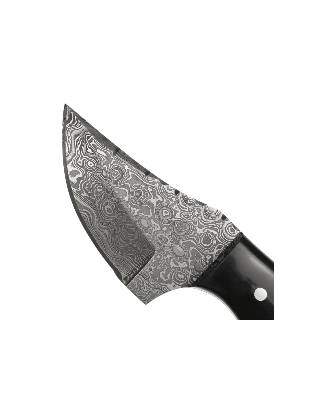 elTORO Skinner Horn - Coltello da scuoio in acciaio Damasco - 8,2 cm - fodero in pelle incluso