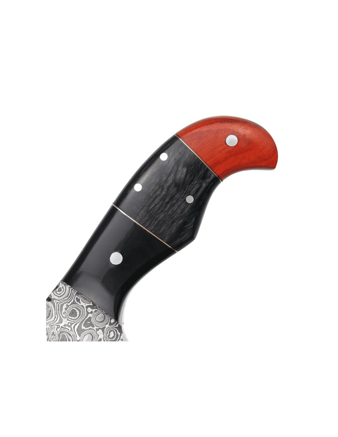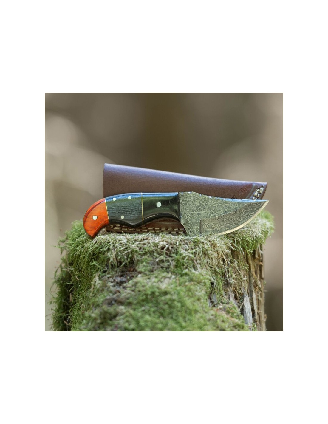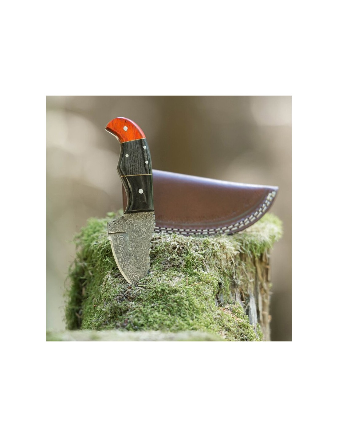 elTORO Skinner Horn - Coltello da scuoio in acciaio Damasco - 8,2 cm - fodero in pelle incluso