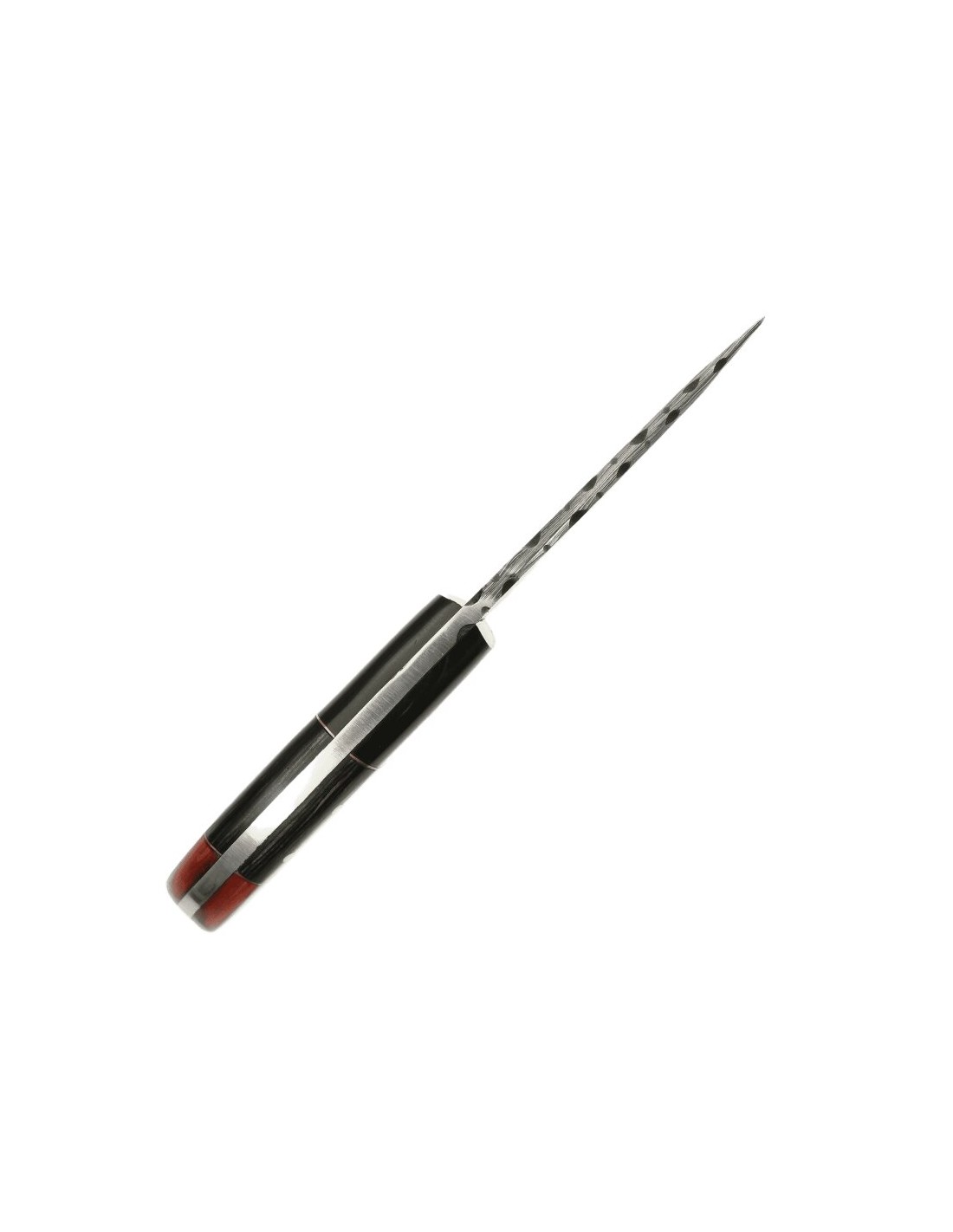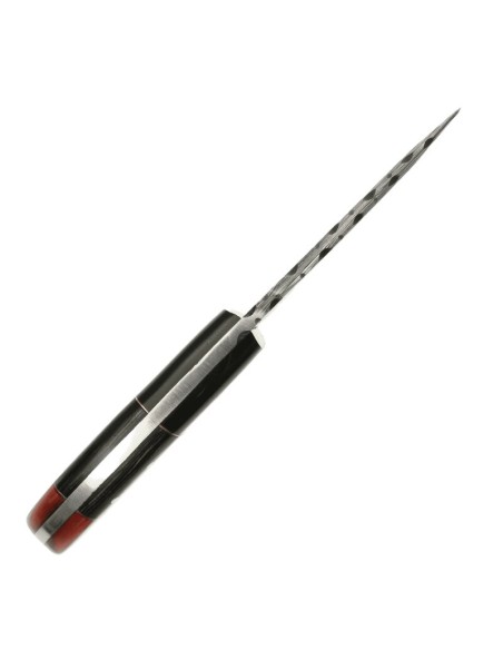 La lama del coltello è realizzata in acciaio Damasco multistrato oltre all'anima in acciaio, che conferisce all'intero coltello un aspetto speciale e unico grazie al suo motivo decorativo. La struttura di questo antico materiale, conosciuto da oltre 2000 anni, è creata dalla lavorazione di diversi strati di ferro e acciaio, che vengono saldati (piegati) e diventano visibili incidendo o lucidando l'acciaio.
