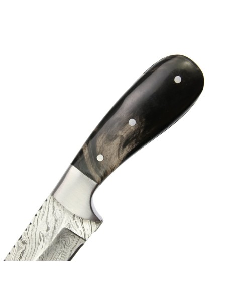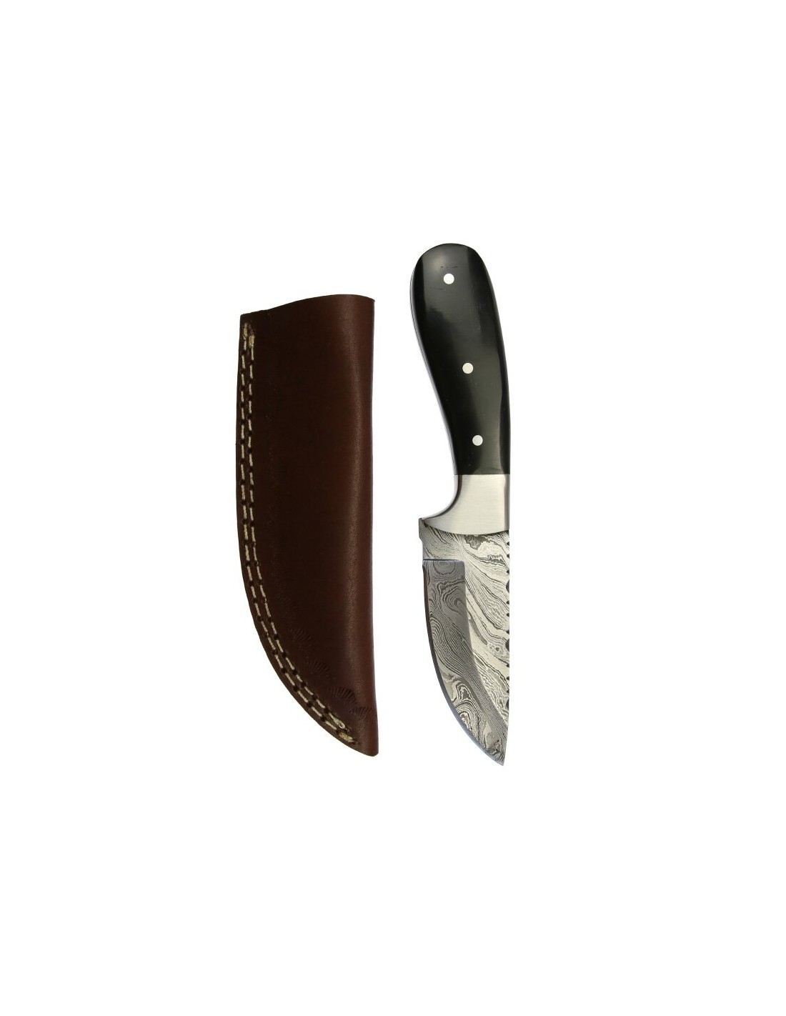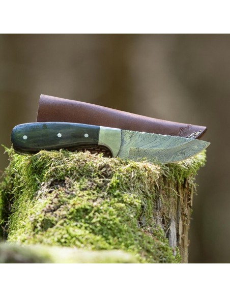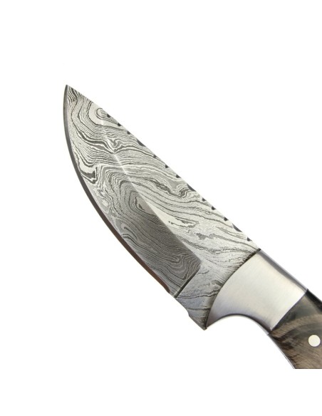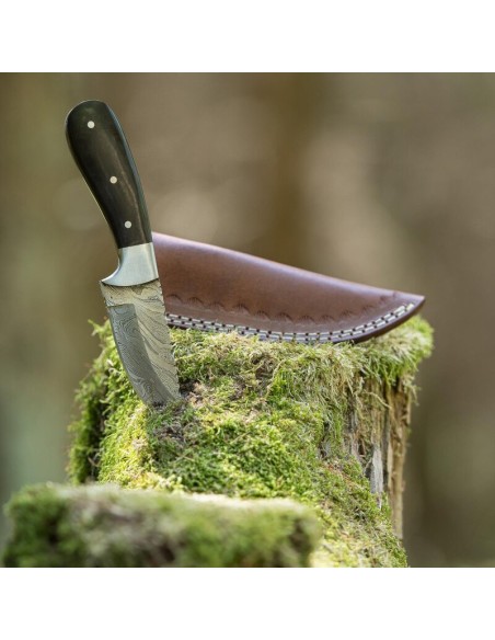 elTORO Corno d'acciaio - Damasco - Coltello da caccia - 9cm - fodero in pelle incluso