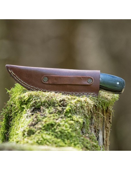 Il coltello è realizzato con un nucleo di acciaio di alta qualità, con una costruzione a codolo pieno. L'acciaio rimane sempre visibile e attraversa l'intero manico come una striscia stretta e lucida. Le scaglie del manico sono fissate su entrambi i lati del codolo piatto e rivettate insieme. Il vantaggio di questo design è tanto semplice quanto efficace: Grazie alla costruzione a codolo pieno, il coltello è più stabile e può trasferire più forza alla lama durante l'uso. Questo design rende inoltre il coltello più pesante e garantisce un migliore equilibrio, poiché la maggiore percentuale di acciaio nel manico sposta il centro di gravità del coltello verso il centro.