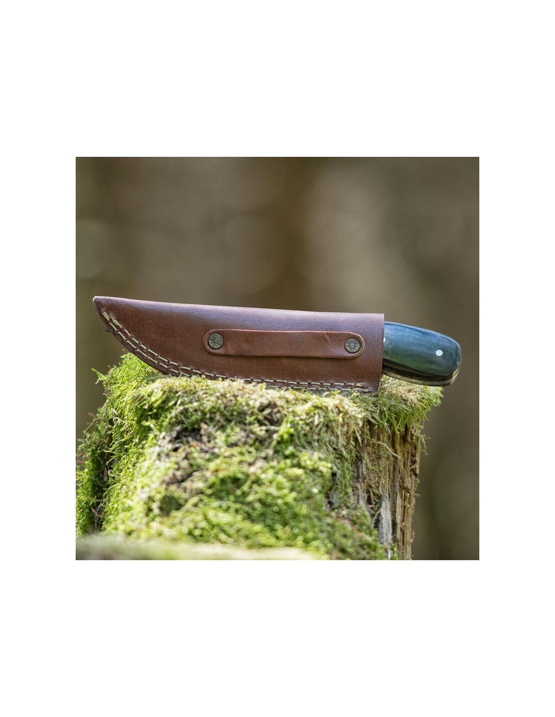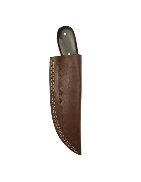 Ogni coltello di elTORO viene fornito con un fodero di cuoio robusto e resistente, progettato con doppie cuciture e decorazioni raffinate. Sul retro è presente un passante, fissato con due rivetti ornamentali, che consente di indossare il fodero alla cintura.