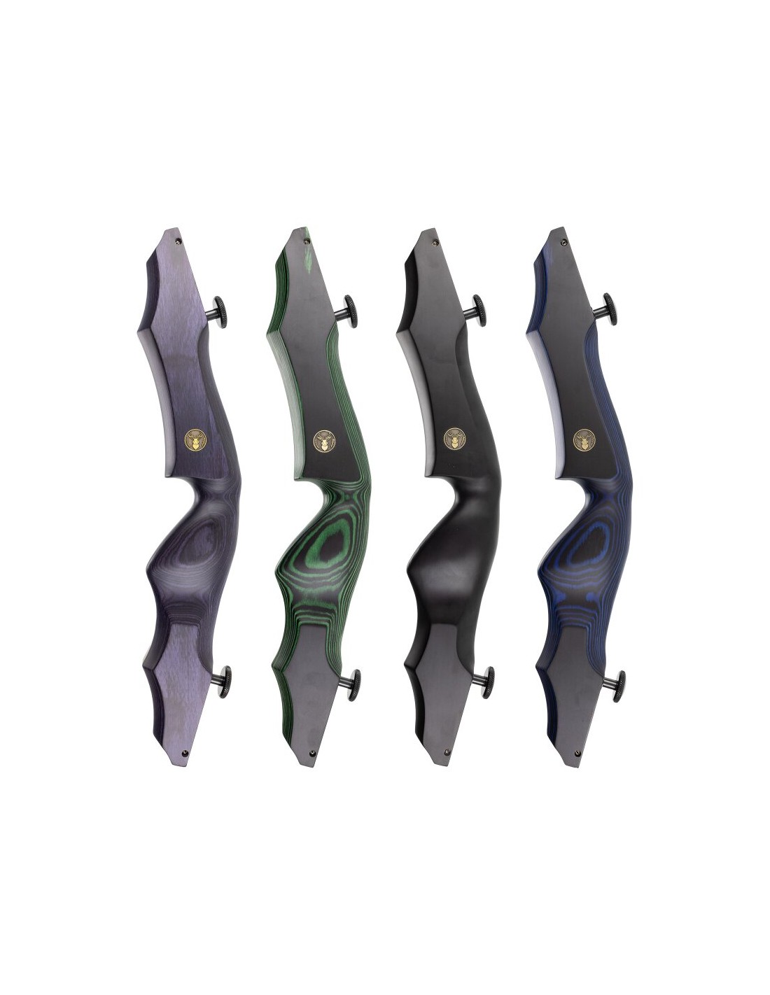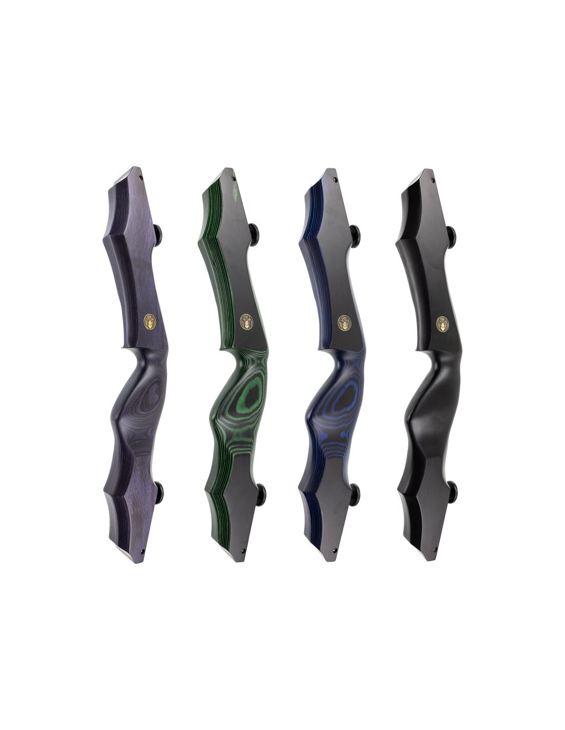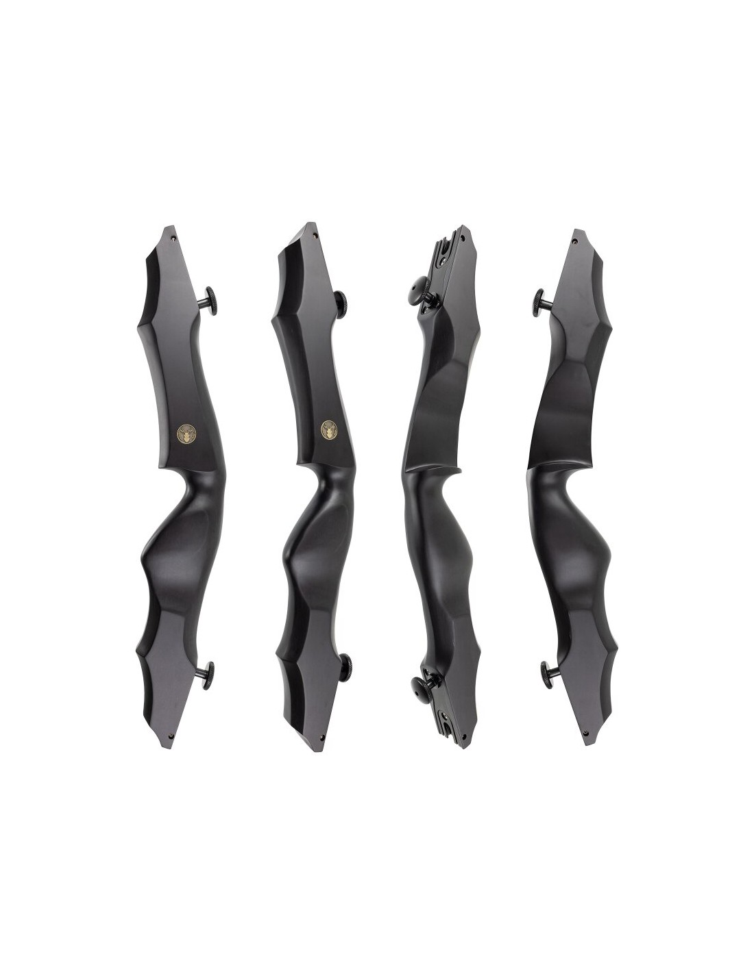 JACKALOPE ha prestato particolare attenzione al montaggio dei flettenti sull'impugnatura Crystal. Mentre i tradizionali riser in legno di solito consentono solo l'uso di speciali flettenti avvitabili, qui non è così: l'impugnatura Crystal è dotata del sistema plug-in ILF. ILF sta per “International Limb Fitting”, un sistema di montaggio standardizzato in cui i flettenti non vengono avvitati al riser, ma semplicemente inseriti. Il blocco di montaggio è qualcosa di speciale e unico! Realizzato in metallo solido (alluminio), non solo è estremamente stabile e preciso, ma consente anche un fissaggio ILF preciso e stabile su un riser in legno che non ha nulla da invidiare a quello su un riser in metallo.